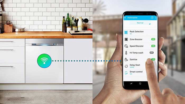 ظرفشویی های هوشمند سامسونگ، قابلیت اتصال به وای فای را دارند و به شما این امکان بخشیده شده است که با نصب برنامه ظرفشویی بر روی گوشی خود، ظرفشویی را از راه دور کنترل کنید به این معنی که شما می توانید ظرفشویی را خاموش یا روشن کنید و همچنین برنامه هایی را می خواهید ظروف ها و اقلام تان با آن شستشو داده شوند را نیز مشخص نمایید.